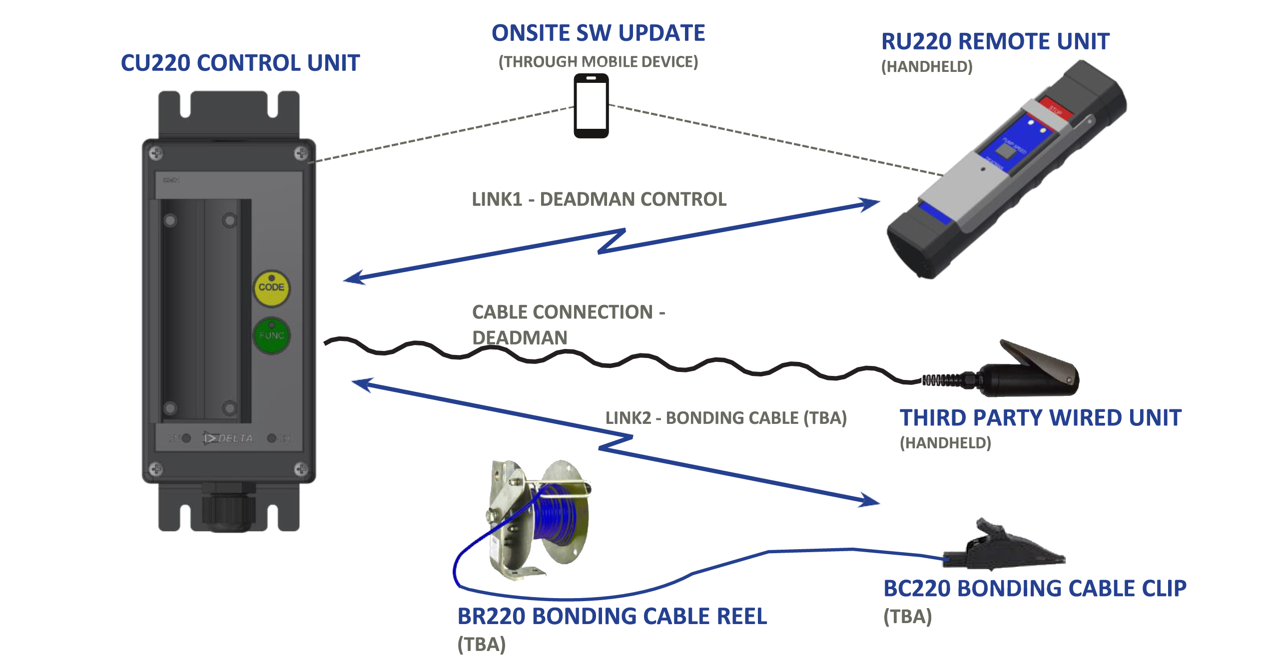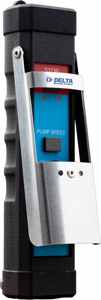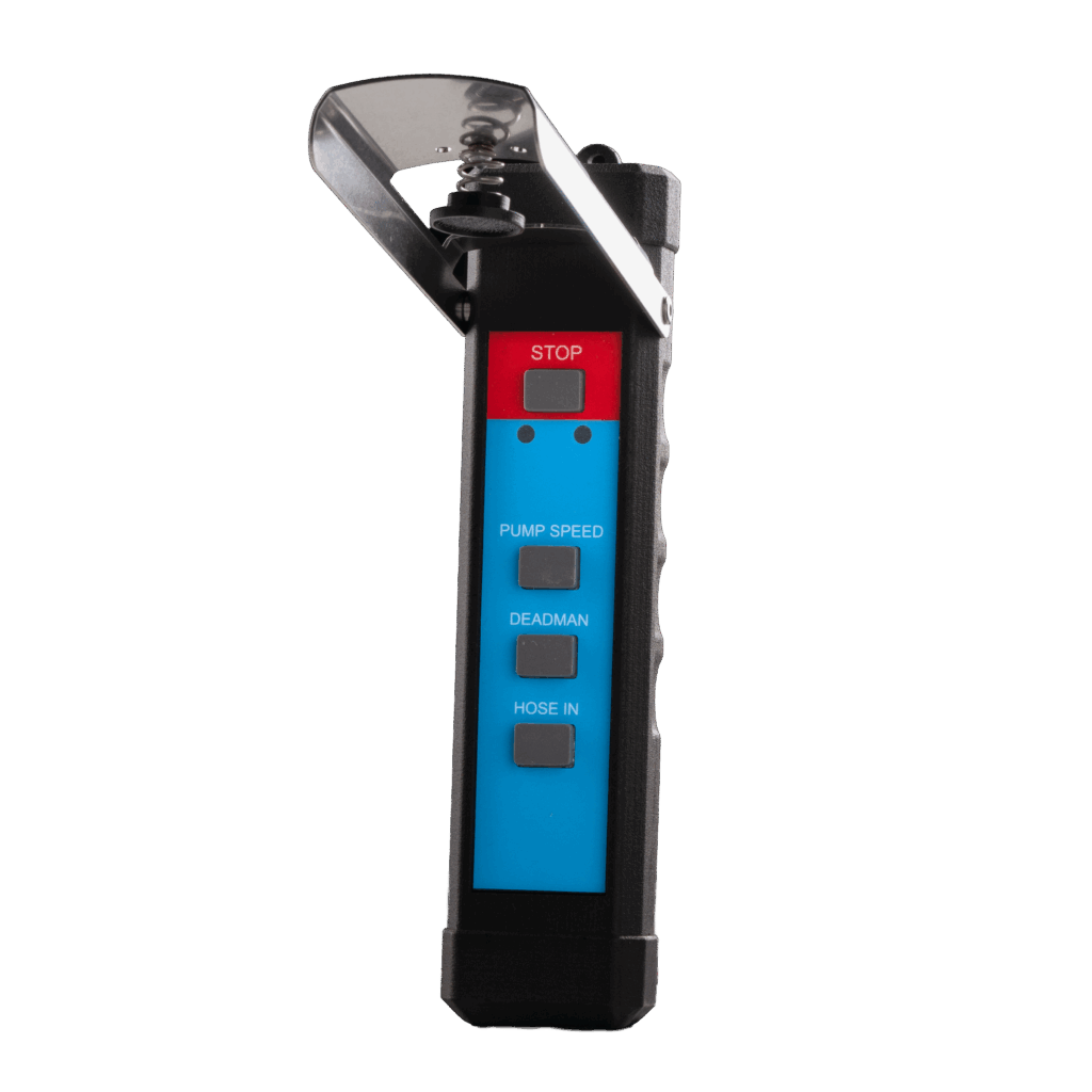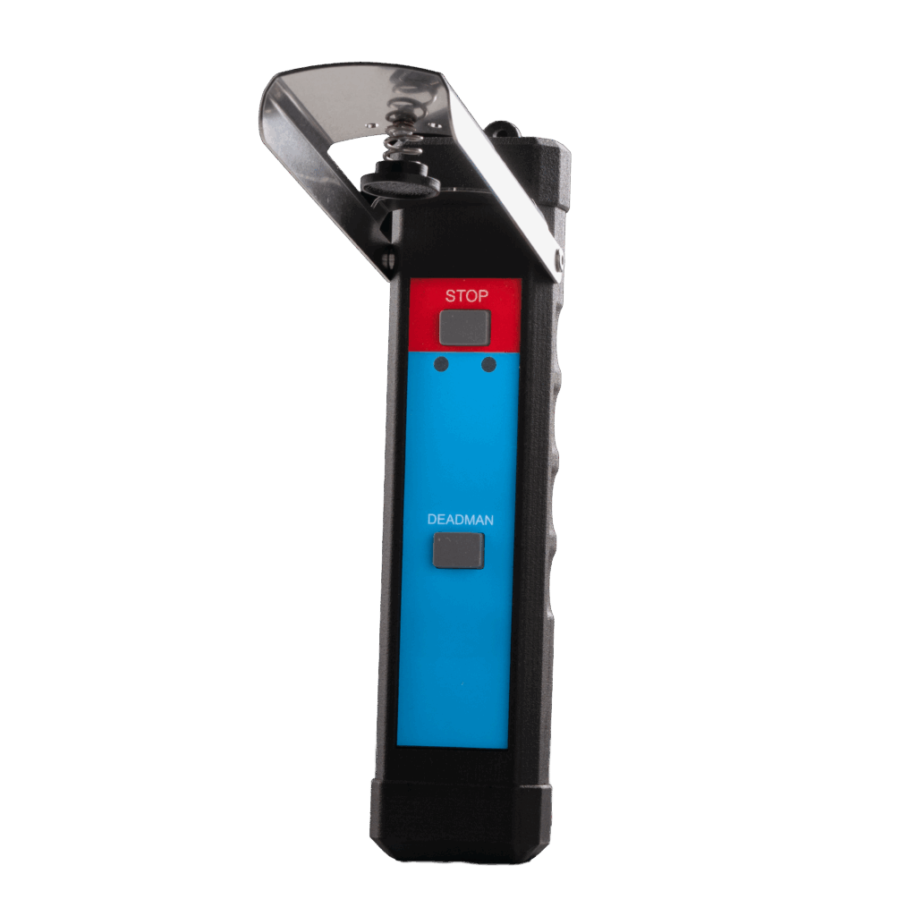 Wireless remote control product provides safety through distance and overview control. Deadman and emergency stop in one product.